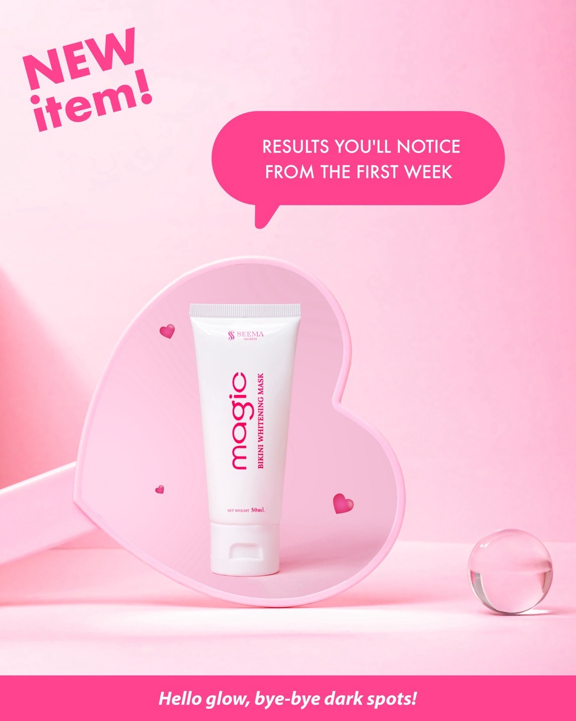دلّلي بشرتچ واستعيدي ثقتچ بجمال المنطقة الحساسة مع ماسك Magic Bikini Whitening من Seema Secrets. تركيبة متطورة مصممة لتفتيح البشرة وتوحيد لونها، ترطيبها بعمق، وتقليل مظهر البقع والتصبغات بفعالية، خصوصًا في منطقة البكيني، بين الفخذين، والمؤخرة.